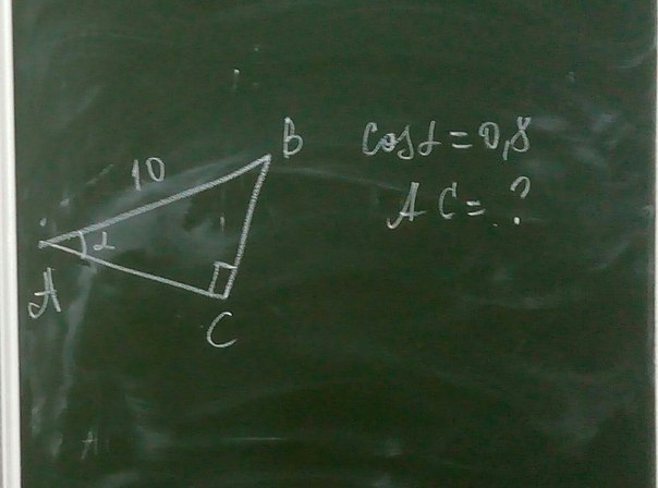 Если Cos a=8/10, а гипотенуза АВ=10, имеем: