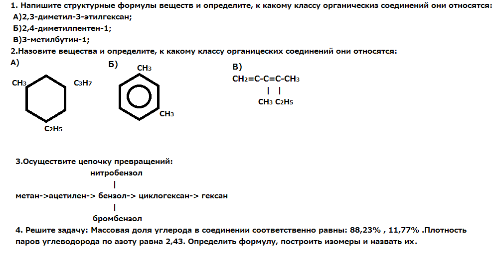 2. а)1-метил,3-этил,5-пропилциклогексан класс циклоалканы