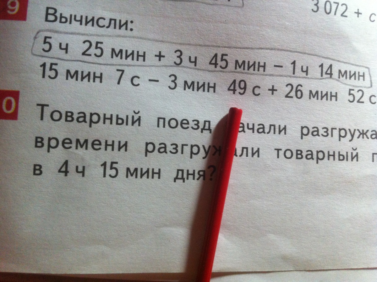 5 ч 25 мин + 3 ч 45 мин - 1 ч 14 мин=7 ч 56 мин