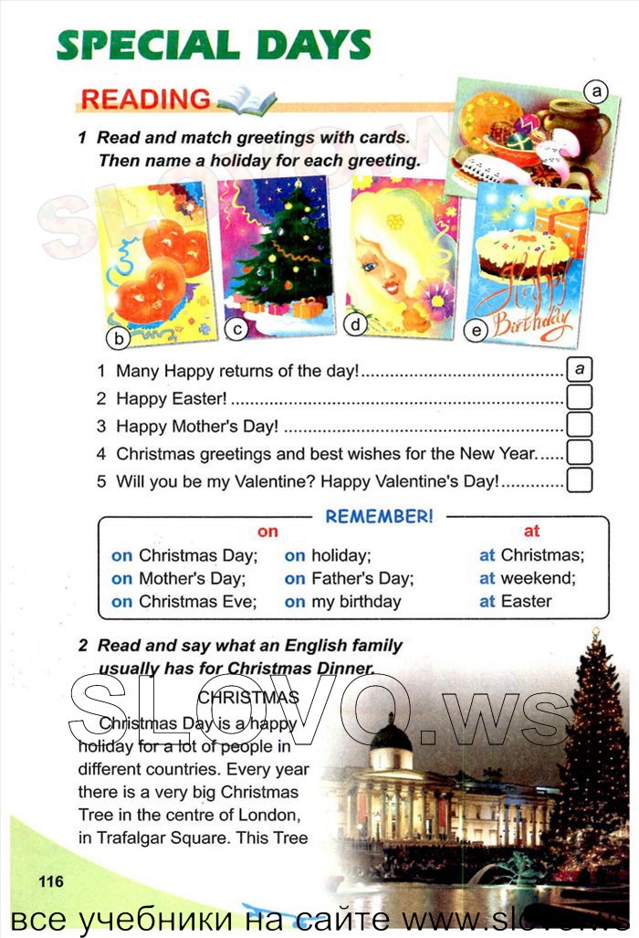 Рождественский день весёлый праздник для людей в разных странах. Каждый год в центре Лондона на Трафальгарской площади очень большая ёлка. (а дальше где продолжение текста?)