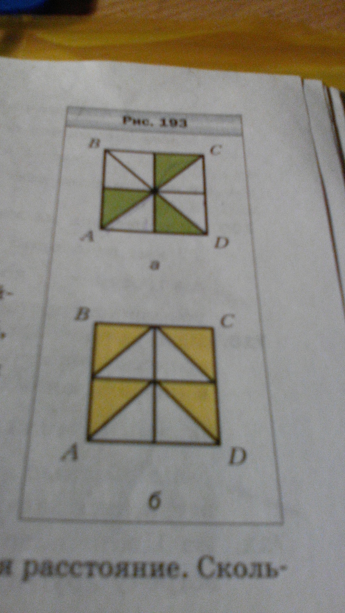 Сторона квадрата АВСD равна 4 см (рис. 193) . Найдите площадь закрашенных частей квадрата.
