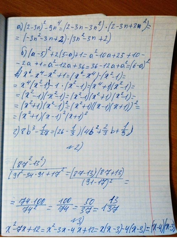 а) (2-3n)²-9n⁴ в) x⁶-x⁴-x²+1