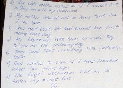 7. Dad wanted to know if I had finished my school two hours before.
