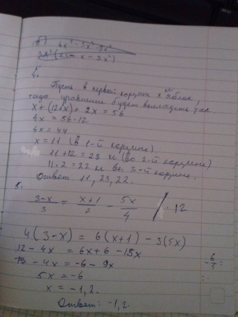 Пусть в первой корзине Х кг яблок , тогда во второй - (Х+12) кг яблок , а в третьей ----2Х кг. Всего в трёх корзинах 56 кг. Имеем уравнение :