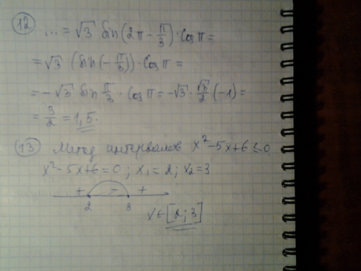 Использованы табличные значения синуса и косинуса, метод интервалов