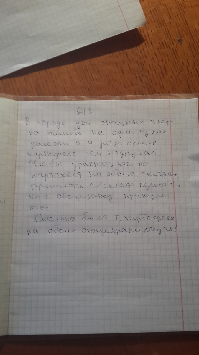 С 1-го склада на овощезавод должны были вывезти 3/4 картофеля, так как на него завезли в 4 раза больше (значит на второй 1/4 этого количества и 1-1/4=3/4)