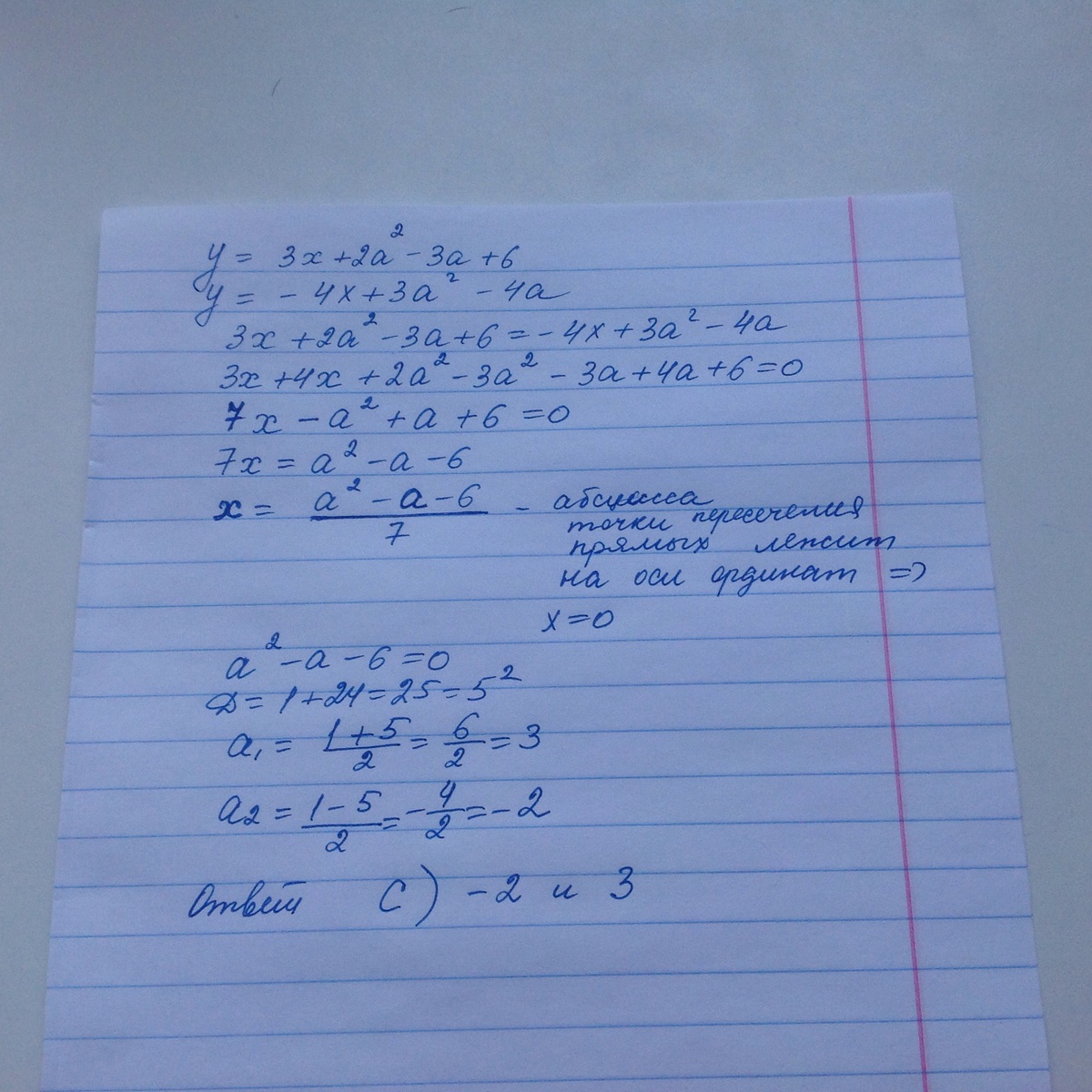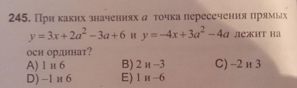 Функции будут при этом иметь вид: у = 2a^2 -3a +6 и y = 3a^2 -4a. точка персечения - это точка, которая принадлежит и одной функции и второй, т.е.: