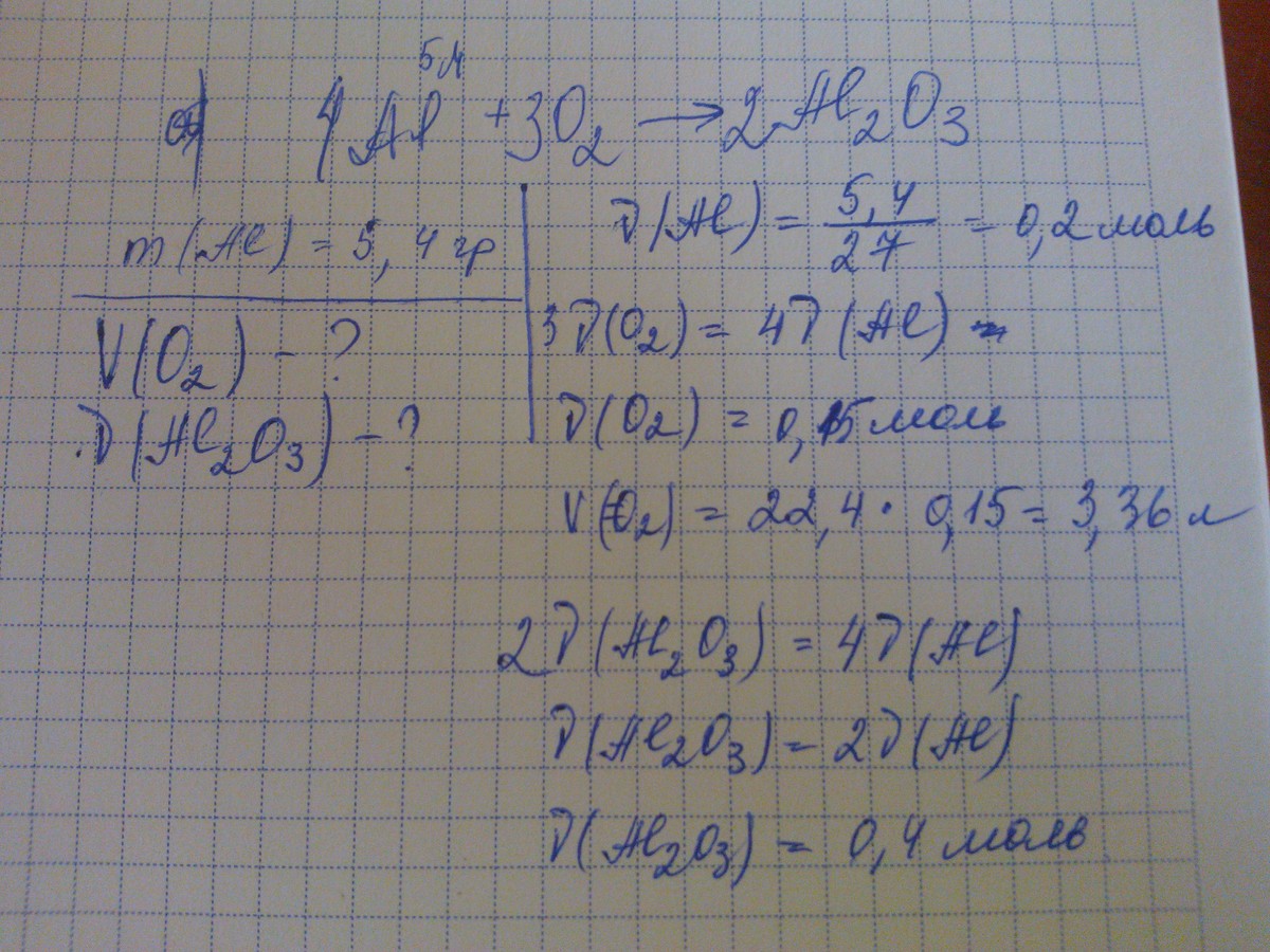 какой объем кислорода необходим для окисления 5,4 грамм алюминия. Какое количество вещества продукта образуется?