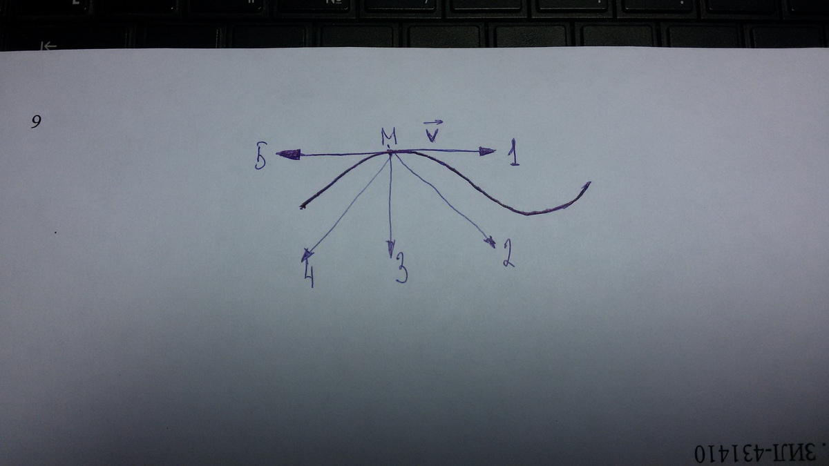 Траектория движения тела и направление вектора его скорости v в точке М показаны на рисунке. Если движение замедленное, то направление полного ускорения а совпадает со стрелкой: