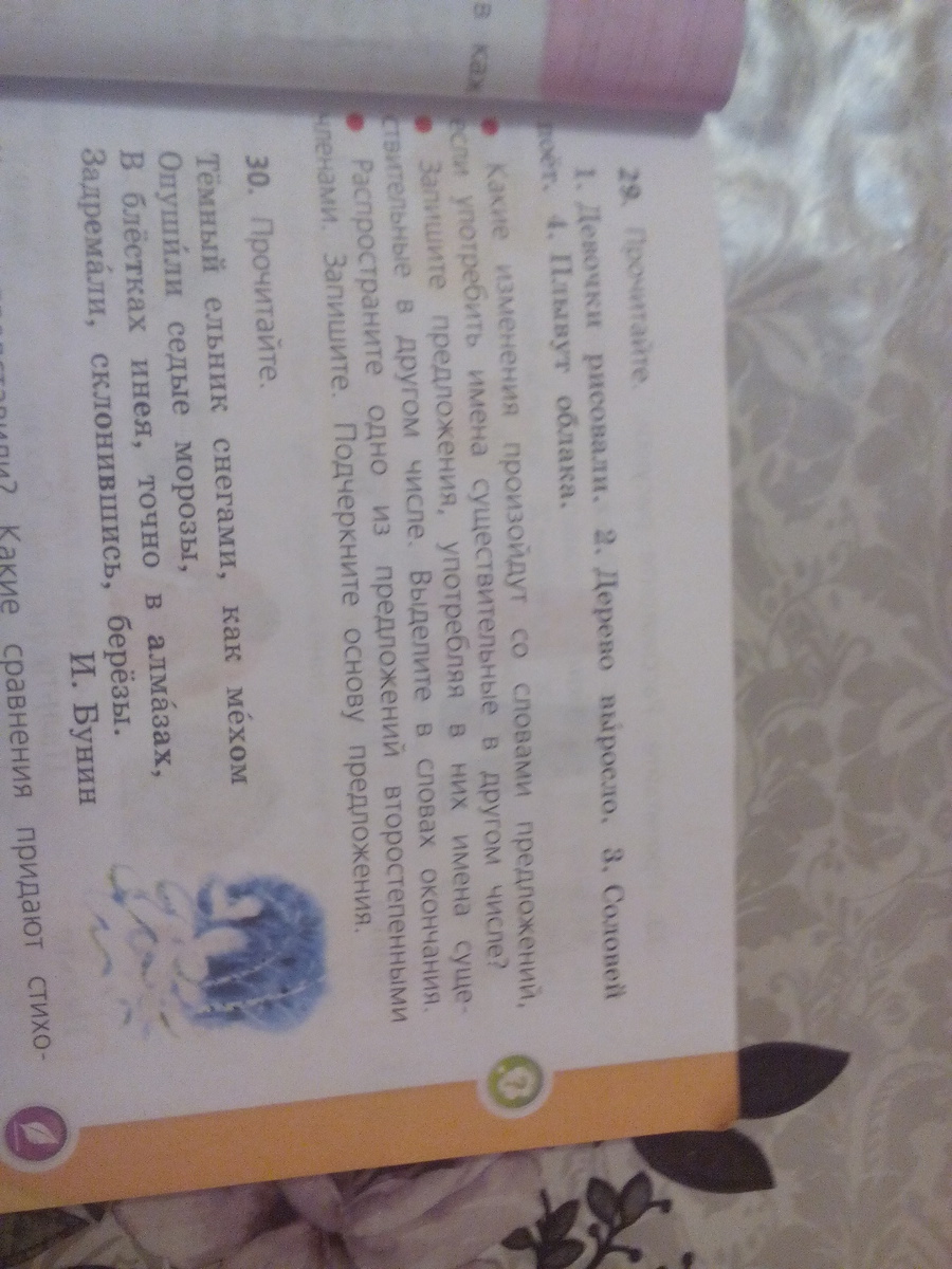 Девочка рисовала. Деревья выросли. Соловья поют. Плывет облако