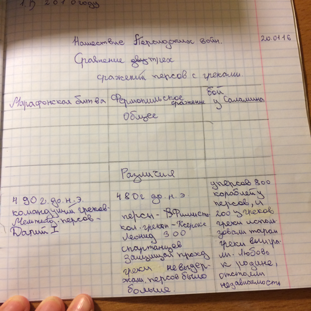 Нужно дописать различия между марафонской битвой, фермопильским сражением и боем у Саламина! А ещё что есть общего! 5 класс
