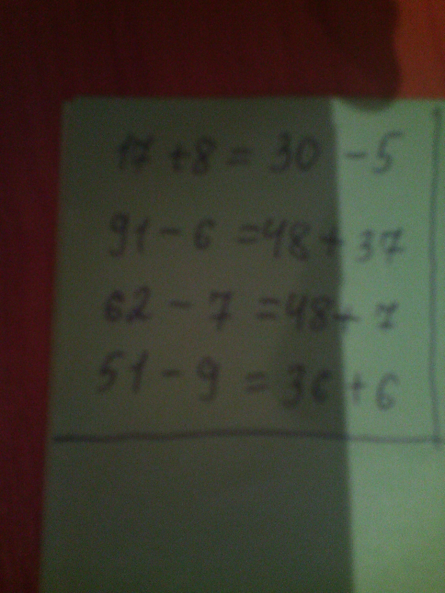 17+8=30-5 91-6=48+37. 62-7=48+7. 51-9=36+6