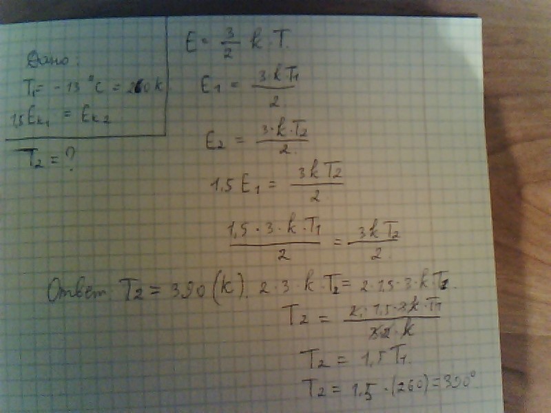 температура воздуха равна -13 градусов по цельсию до какой температуры надо ее нагреть чтобы средняя кинетическая энергия поступательного движения молекул увеличилась на 15 процентов?в полтора раза? ПОМОГИТЕ ПОЖАЛУЙСТА РЕШИТЬ!!!!!!!!!!!!
