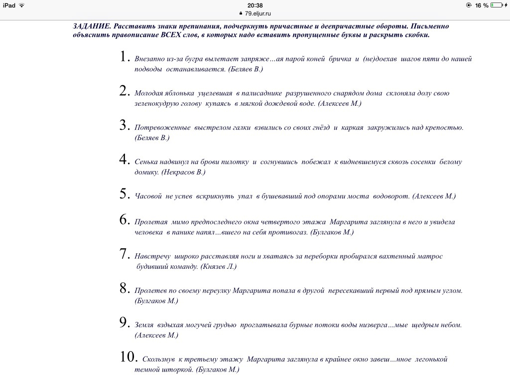 Причастные обороты подчеркиваем волнистой линией, а деепричастные обороты и одиночные деепричастия штрих-пунктиром.