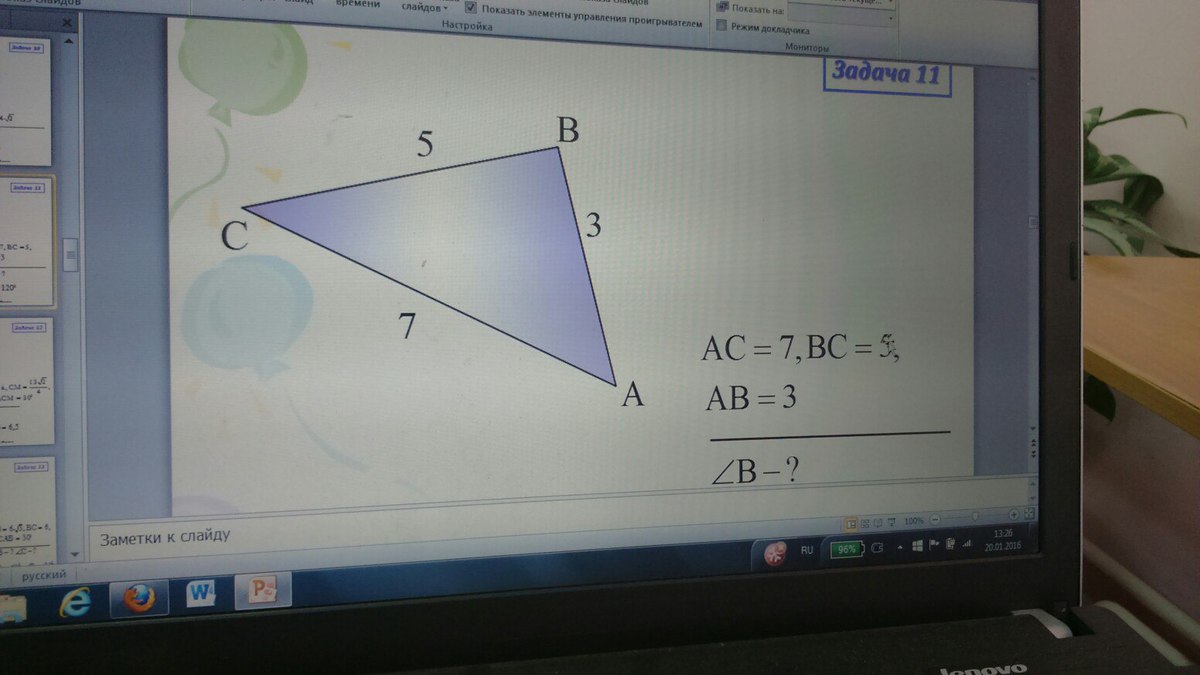 сos ∠В = -1/2