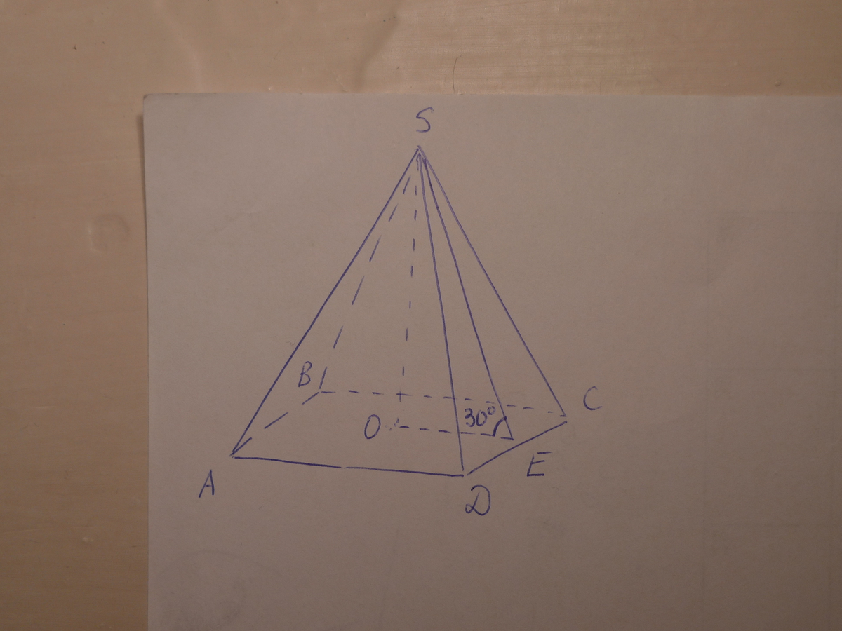 Апофема SE = OE/cos 30° = 6/(√3/2) = 4√3 см