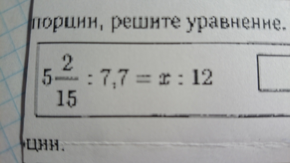 Решите пожалуйста уравнение: 5 2/15: 7,7=x:12