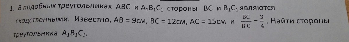4)BC/B1C1 = 12/B1C1 = 3/4 т.е. В1С1 = 16 см