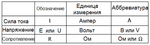 Единицы измерения силы тока, напряжения и Эл.сопротивления