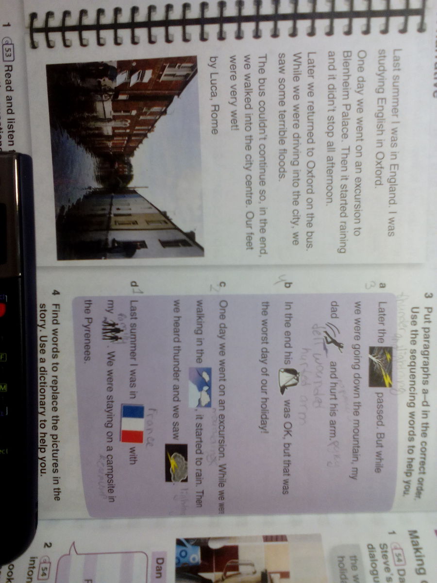Прошлым летом я был в Англии.Я изучал английский язык в Оксфорде.Один день мы продолжали экскурсию к Бленему Palace.Затем это было запущено дождит и не прекращалась даже после обеда.Позже мы вернулись в Оксфорд на автобусе.Пока мы приезжали в город, мы видели некоторые ужасные наводнения.Автобус не мог продолжать так,в конечном итоге,мы пошли в городской центр.Наши ноги были очень мокрые!
