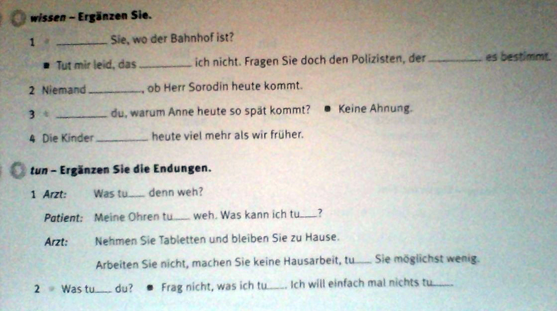 3. Weißt du, warum Anne heute so spät kommt? Keine Ahnung.