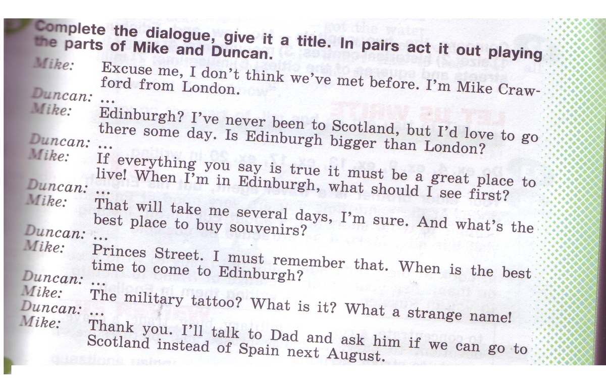 3) Ducan: If I were you, I would attend Scotland famous Edinburgh Castle. It was the home of Scotland's royal family until the year 1603. Besides, you had better see the Royal Mile, the most famous road in Edinburgh that begins at the castle and goes eastwards.
