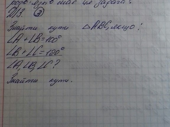 Другий випадок. Кути А та В рівні, як кути, що лежать при основі рівнобедренного трикутника. З рівняння кут А + кут В = 100 градусів; кожен з них по 50 градусів. Кут С дорівнює 180 - кут А - кут В = 180 - 100 = 80 градусів. Кут А = куту В = 50 градусів, кут С = 80 градусів.