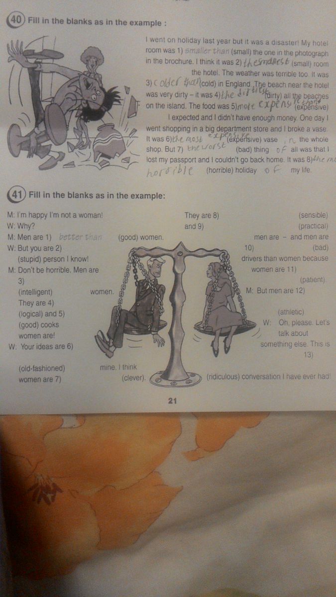 6 more old-fashioned than, 7 the cleverest, 8 more sensible and, 9 more practical than, 10 worse, 11 more patient, 12 more athletic. 13 the most ridiculous