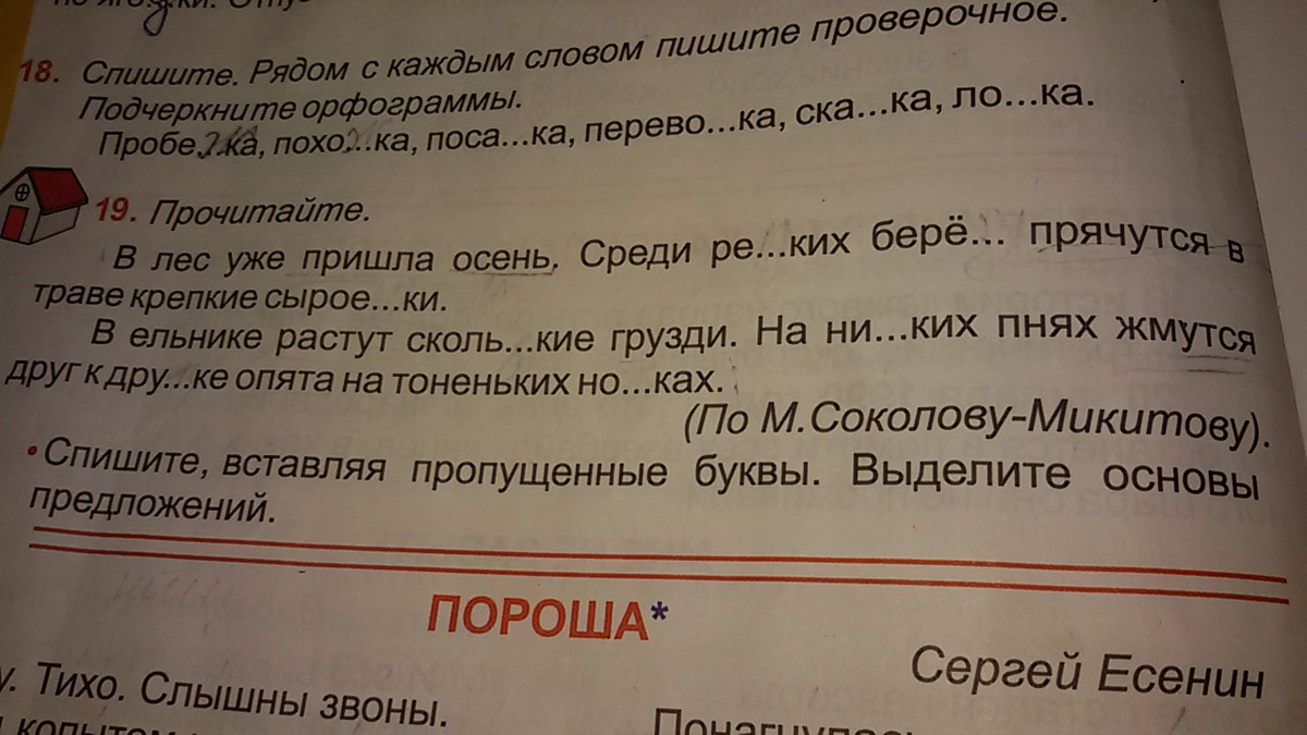 Основы: Осень пришла. Сыроежки прячутся. Грузди растут. Опята жмутся.