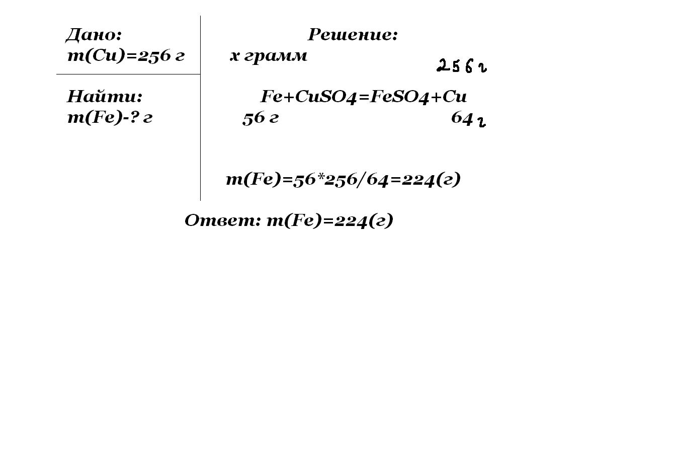 pomogite pojaluista "po reakcii Fe+CuSO4 ravno FeSO4+Cu obrazovalos 256g. medi. skolko molei zneleza vstupilo v reakciu?
