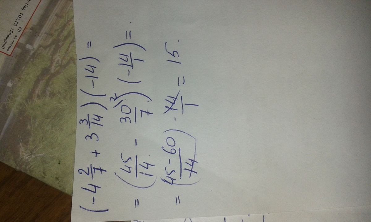 (-4 2/7+3 3/14)×(-14)=-1/7
