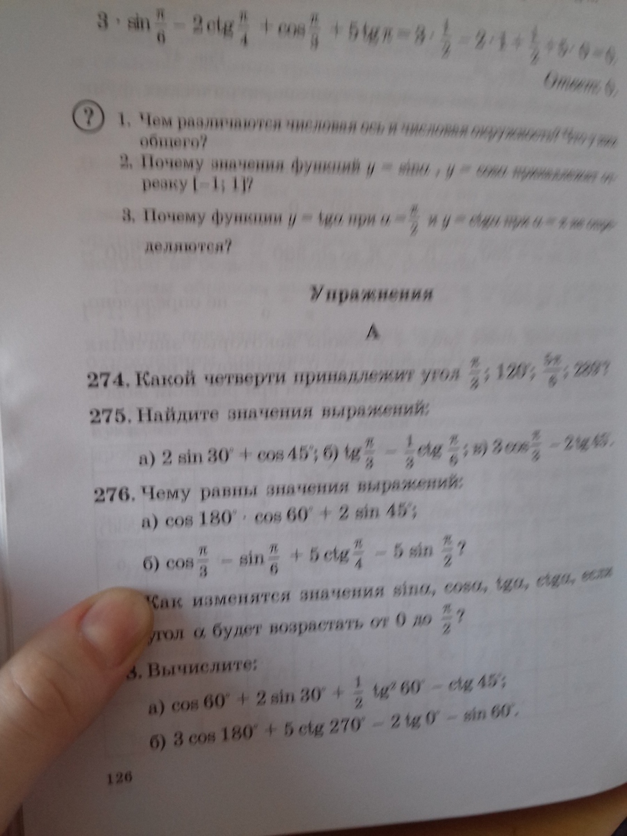 в) 3cos пи/3- 2tg 45°=3cos60°-2tg45°=3×1/2- 2×1= -1/2=-0,5