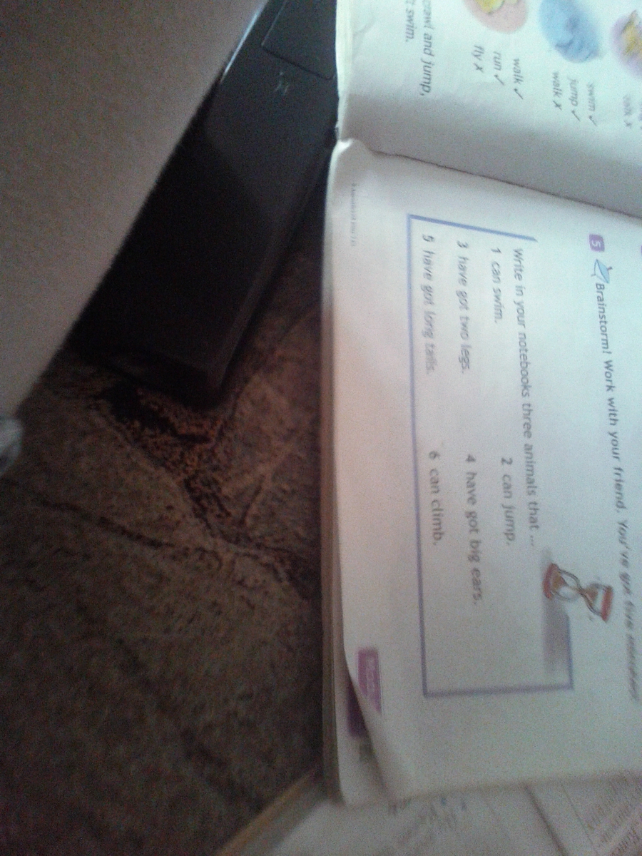 Просто напиши животных которые могут плавать,у кого есть две ноги и тд.На английском конечно же