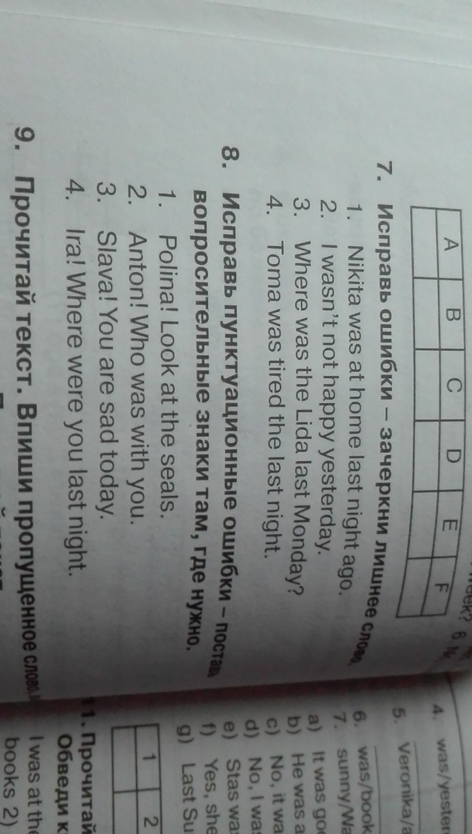 зачеркни в 7.ex. 1.ago.2.not.3.the.4.the. в 8ex поставь (?) во 2 и 4 в конце предложений.