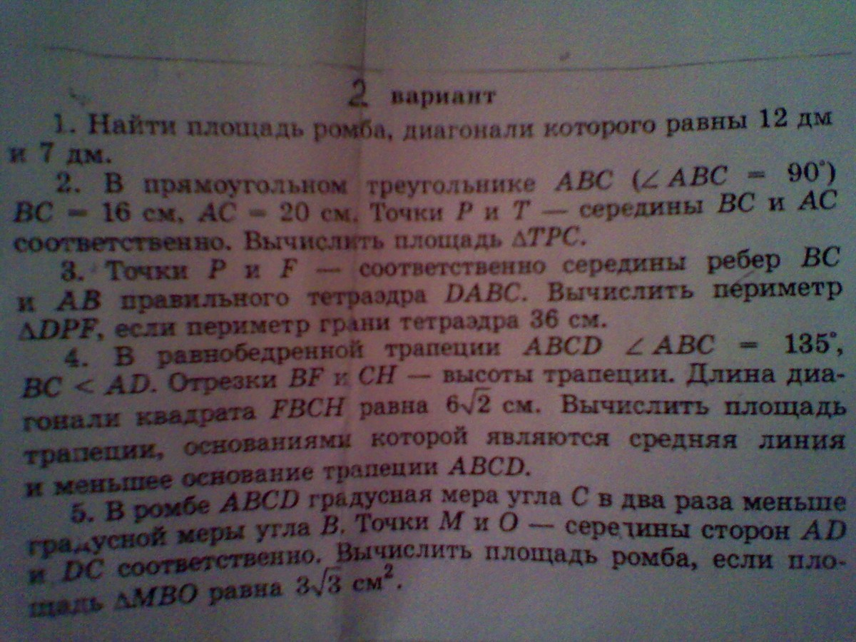 3) Периметр грани тетраэтра = 36, тетраэдр правильный => грань - равносторонний треугольник со стороной 36/3 = 12