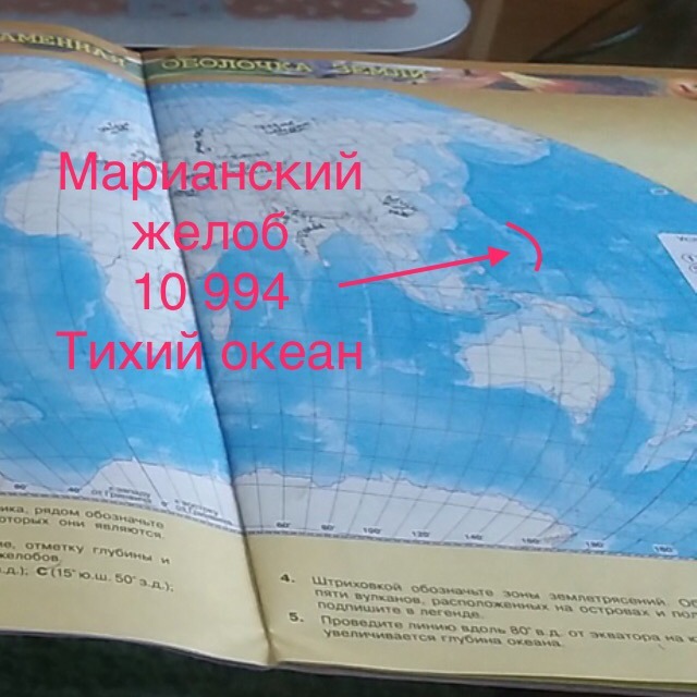 обозначьте самую глубокую точку мирового океана .подпиши ее название.отметку глубины и название океана, в котором она расположена. обозначь пять глубоководнвх желобов.