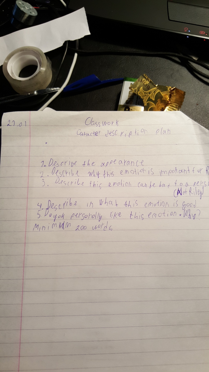 наришите пожалуйсто 200 слов по английски о страхе из мультика головоломка вот план