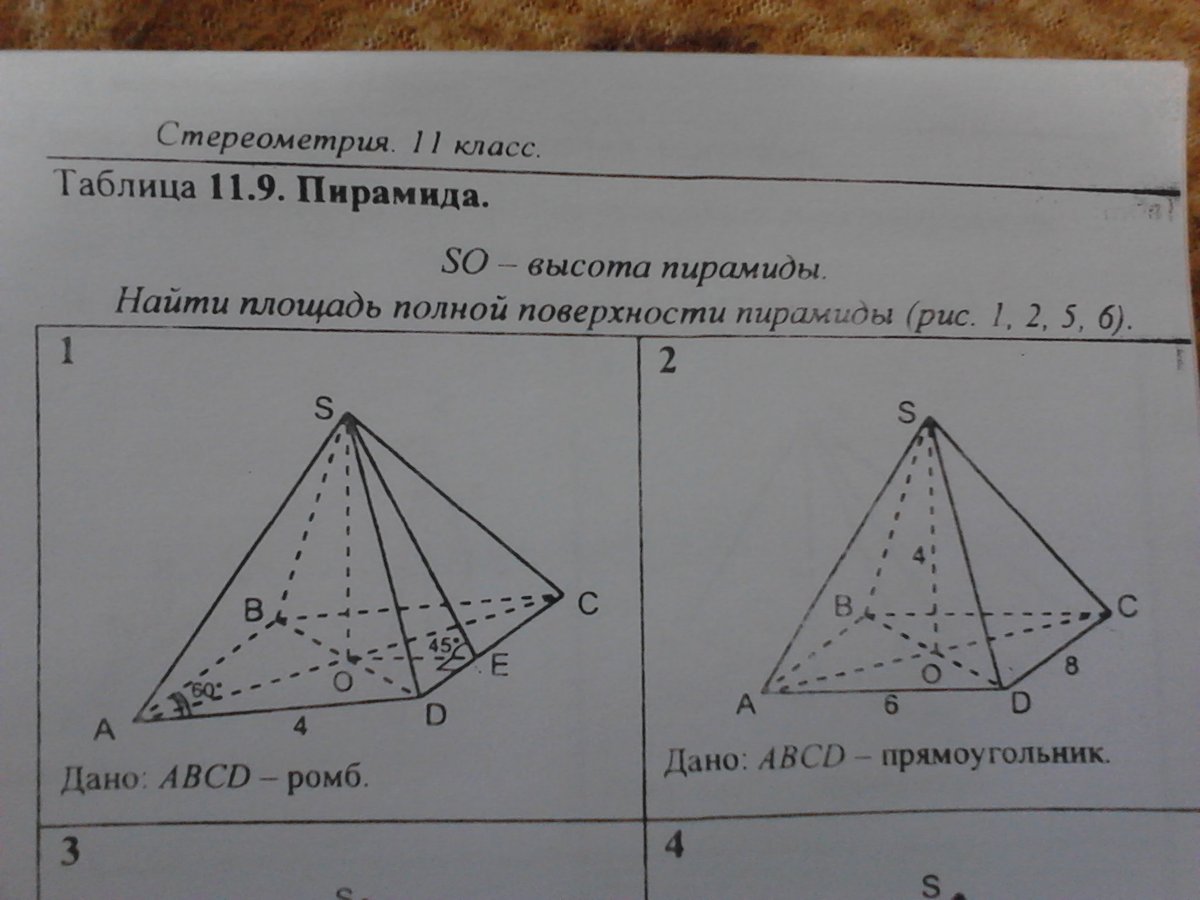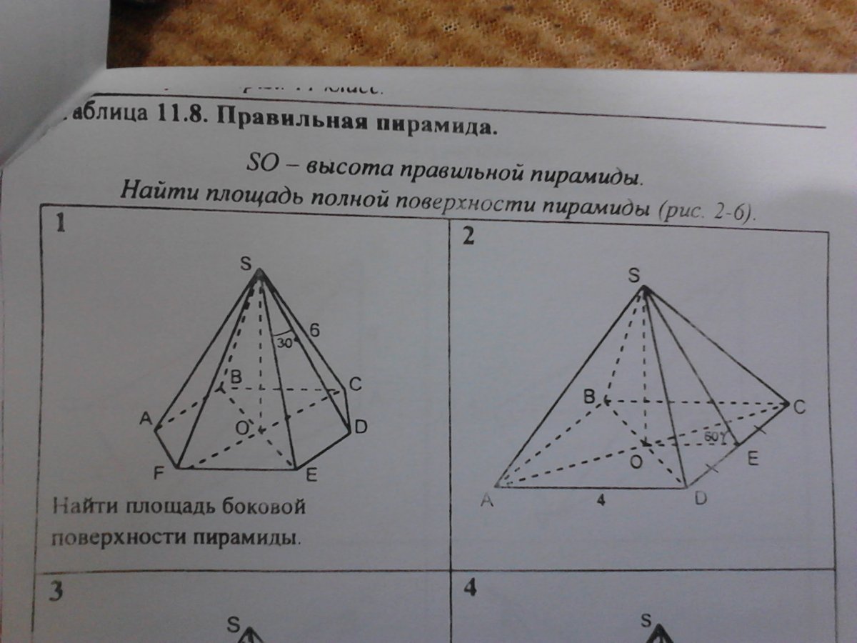 3)Sполн.пов.пирамиды=1/2Росн*L+2Sосн,L-апофема
