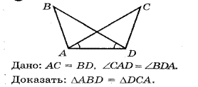 Всё что надо есть в дано.Нажо лишь дописать что AD общая.и тогда ABD=DCA по 1-ому признаку