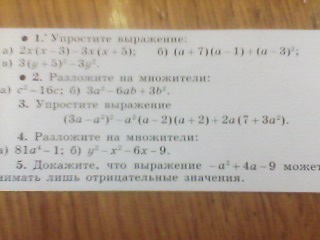 1.а) 2x(x-3)-3x(x+5)=2xквадрад-6x-3xквадрат+15x= - xквадрат+9x= 9x-квадрат
