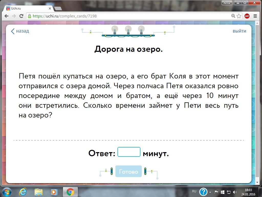 70 минут . На половине 30 умножить на два =60 минут+10=70минут