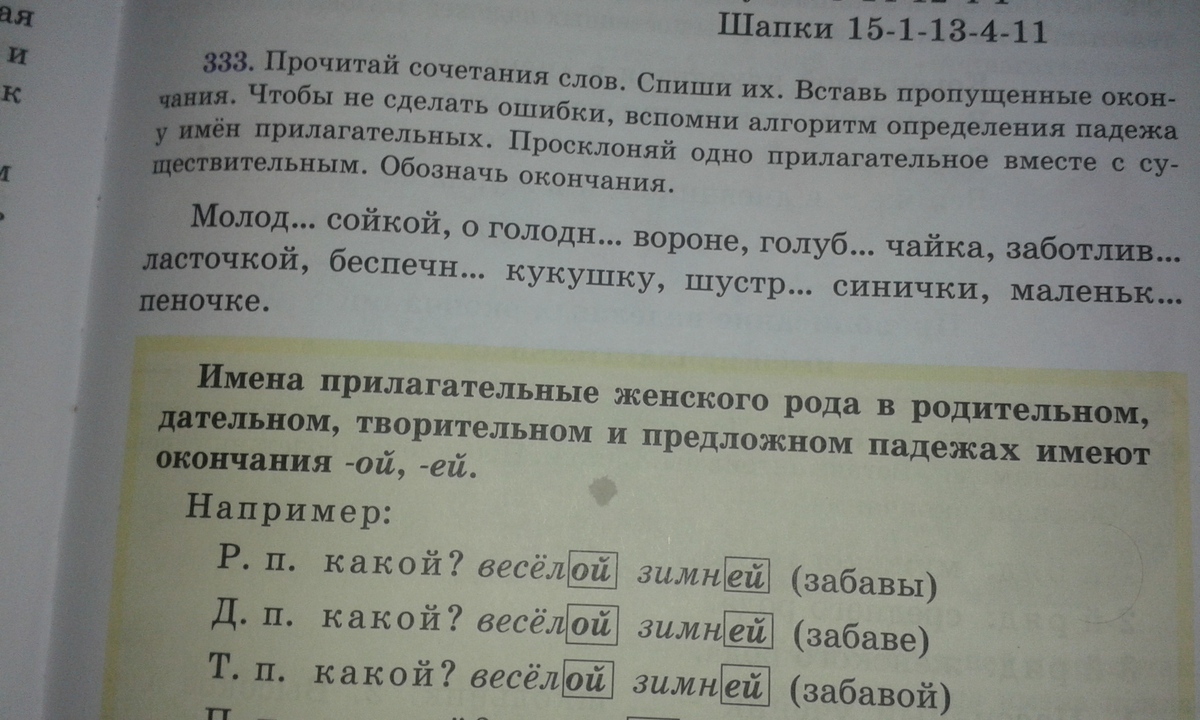 Прочитай сочитения слов.Спишите их. Вставь пропущенные окончания. Чтобы не сделать номер 333