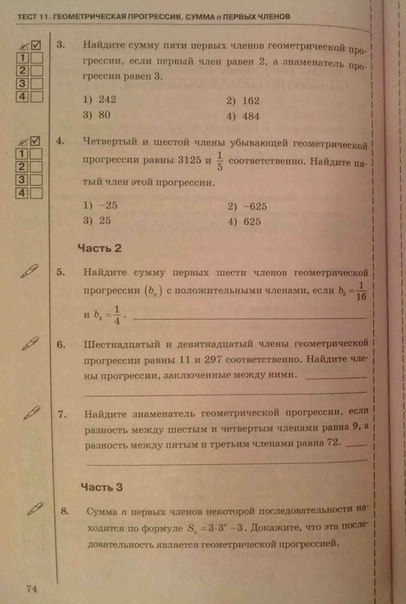 Решите два задания из 2 части (5 и 6),чтобы понять как геометрическую прогрессию решать и по какой формуле