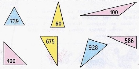 2.Из чисел,записанных в прямоугольных треугольниках,составь разности,которые ты можешь вычислить.Умножь каждый из полученных результатов на число,записанное в тупоугольном треугольнике.