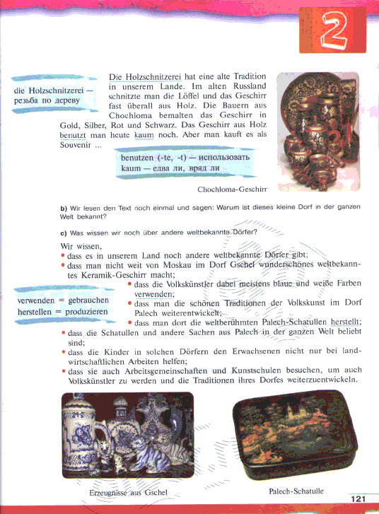 Кто же не знает красивую посуду из хохломы? Нет такого человека в России, который бы не знал хохломскую роспись. Это название пришло из деревни Хохлома. Деревня находится недалеко от Нижнего Новгорода. Раньше в Хохломе проводились ярмарки. Крестьяне из разных деревень приносили сюда на продажу ложки и посуду. Все из дерева.