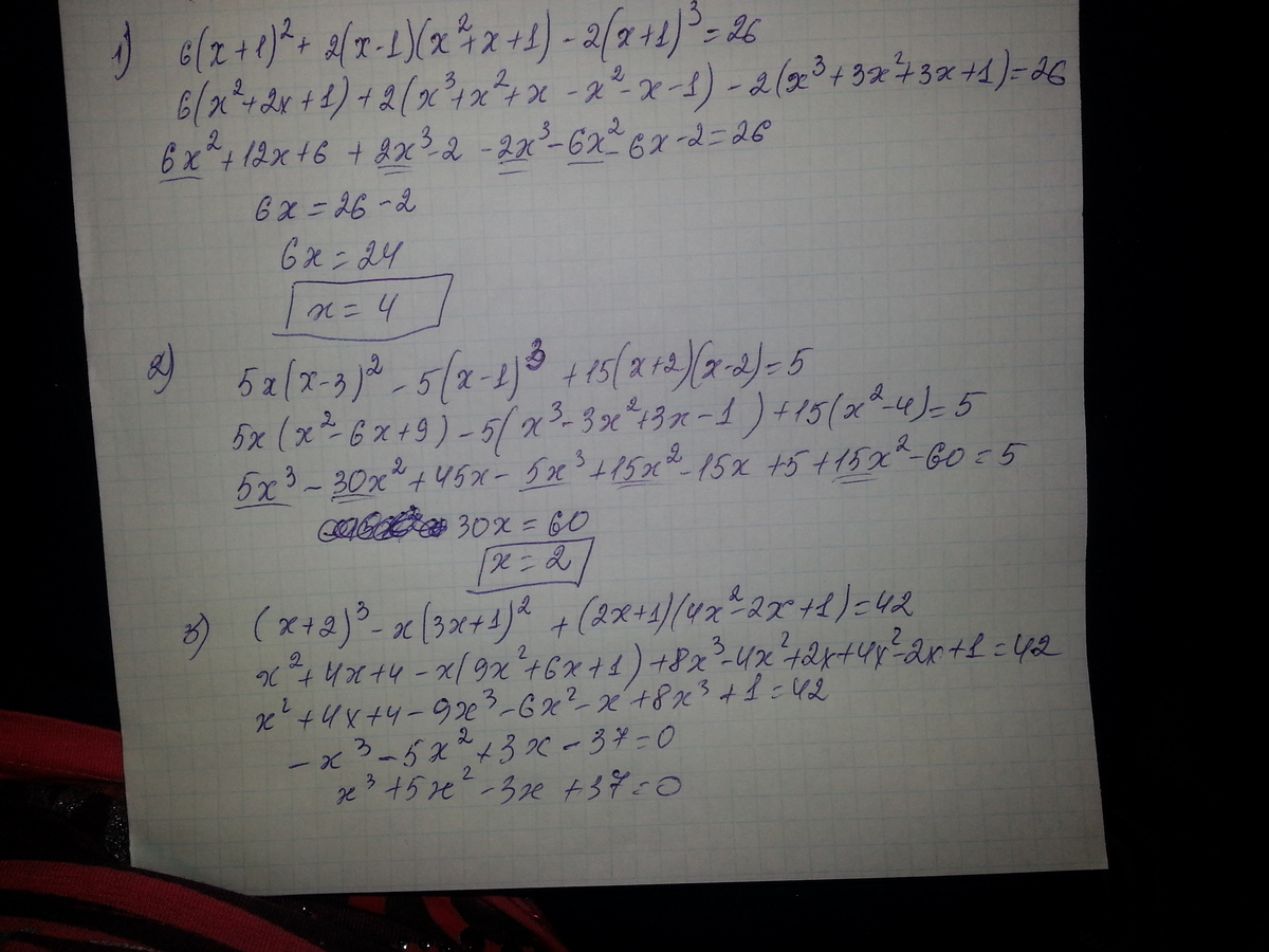 Решите уравнение: 1) 6(х+1)²+2(х-1)(х²+х+1)-2(х+1)³=26