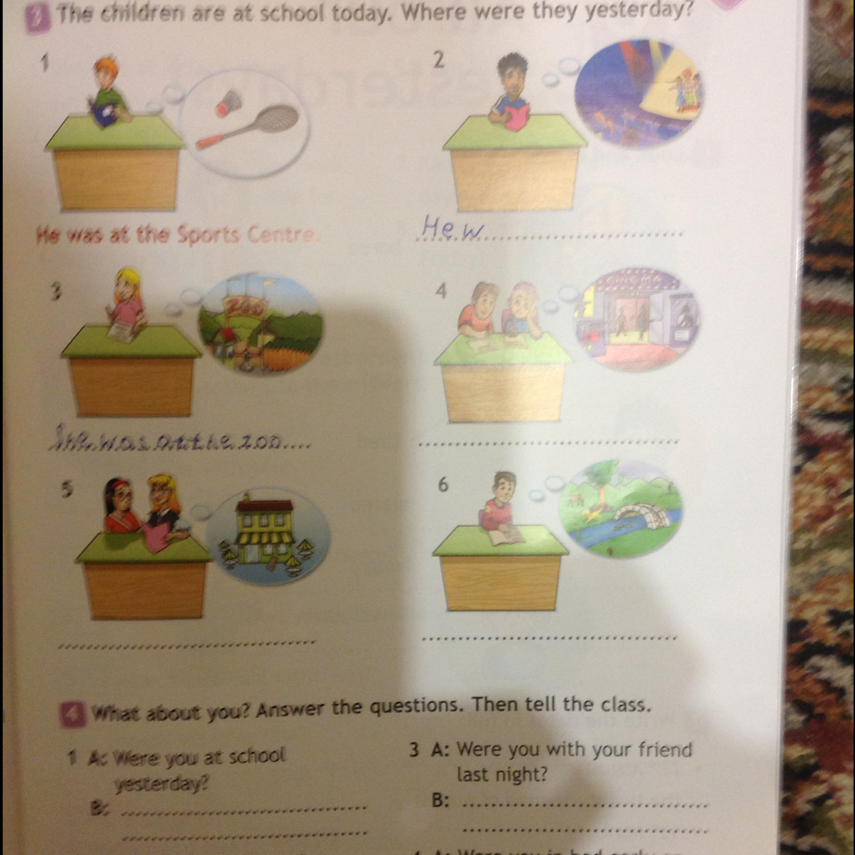 4 they were at the cinema. 5 they were at the caffe 6 he was at the park
