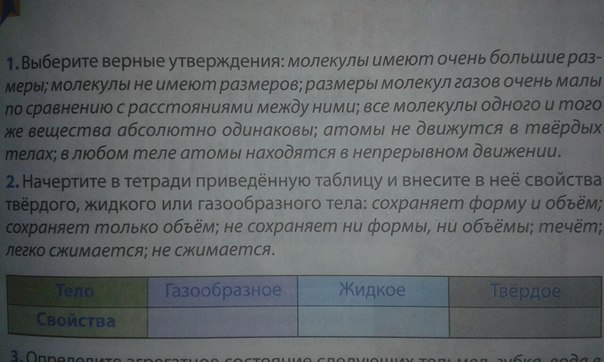 1размеры молекул очень малы по сравнению с расстояниями между ними, молекулы одного и того же вещества одинаковы, в любом теле атомы находятся в непрерывном движении