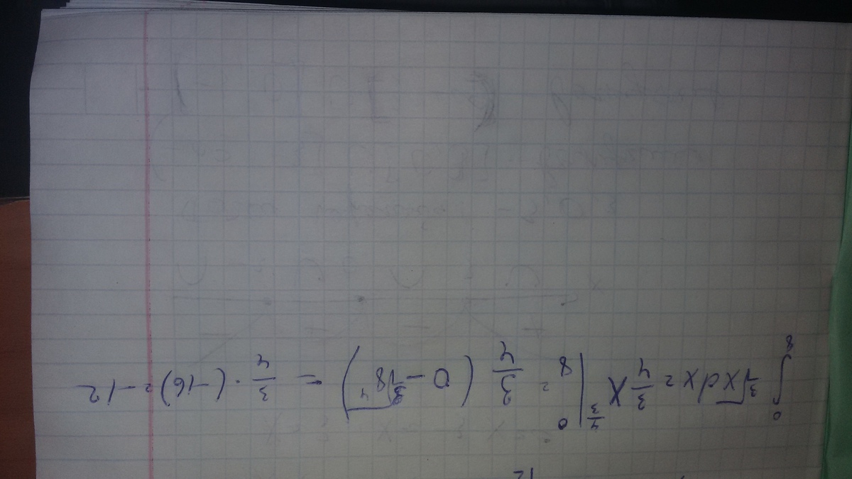 Int (0;8) = 3/4*8^(4/3) - 3/4*0^(4/3) = 12 - 0 = 12