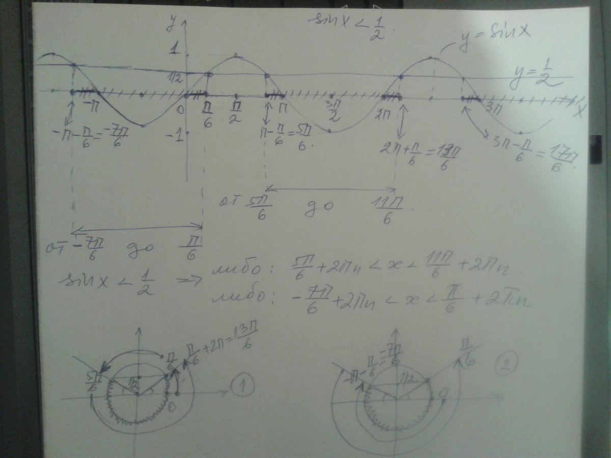 угол будет х=5П/6, то за ним мы пойдём к углу 2П+П/6=13П/6.